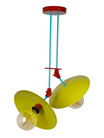This modern multicolored masterpiece is constructed from mild steel and features a unique design, two light arrangements attached to the angled arms that provide a good spread of light to your place. It offers a lively pop of color to your homes and will create a dynamic atmosphere. Suitable for places like kitchens, bedrooms, halls, or living rooms.