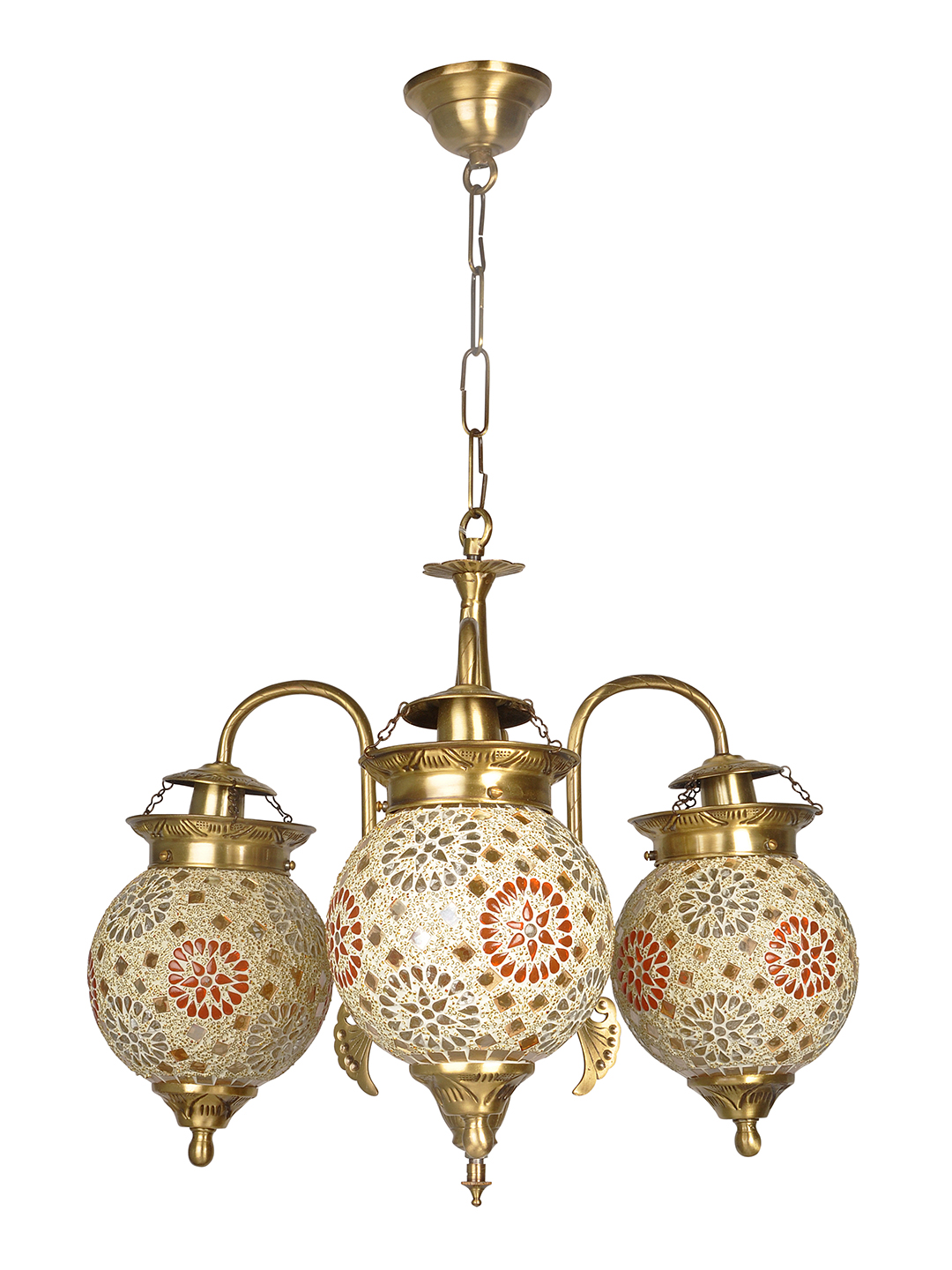90's meet present with a prefect blend of hand crafted small brass chandelier with mosaic glass globes to give an authentic classical look to any room.