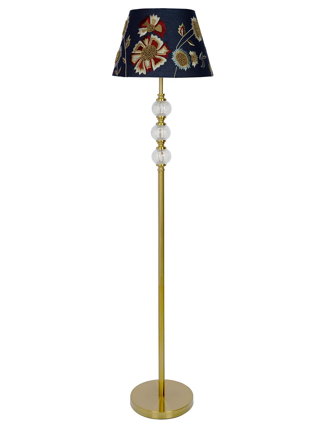 This floor light offers an elegant & charming design that endures a perfect presentation of the contemporary style. It showcases a single blue colored tapered fabric shade embroidered with gorgeous flowers which balances on a brass pole with a circular base. It provides a simple yet charismatic look that illuminates your place with a bright glow. It lends a great atmosphere to your study, bedroom or living room.