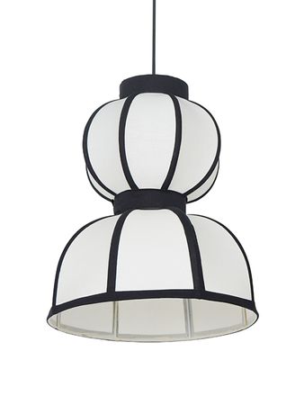 The JapandiDoubleBowl-CO-HL1 is an exquisite expression of Zen-inspired design, perfect for creating a serene and balanced atmosphere. This 16-inch tall pendant features a unique double-tiered "bowl" silhouette, where a smaller sphere rests gracefully atop a wider base. Constructed from high-quality white fabric, the shade is defined by striking black structural ribbing that provides a modern, architectural contrast to the soft textile. Measuring 12 inches in width and including a 20-inch adjustable hanging cable, this 1-light pendant is designed to emit a soft, diffused light that eliminates harsh shadows. Its minimalist aesthetic and organic form make it the definitive choice for Japandi-style dining areas, peaceful meditation corners, or contemporary bedrooms. Whether used as a single focal point or hung in a series, it brings a touch of East Asian craftsmanship and Scandinavian simplicity to any modern interior.