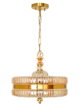 he RoundBoxCutGlass-16-HL4 is a masterpiece of light and glass, designed to bring a sophisticated glow to any Transitional interior. This 16-inch wide hanging light features a stunning enclosed drum silhouette crafted from high-quality hand-cut glass. The glass is finished with a warm golden luster, which enhances the refraction of light through the intricate vertical patterns, creating a shimmering, multi-dimensional effect. The fixture is elegantly held by high-grade brass fittings, including a striking central gold-tone band that anchors the design with a touch of modern luxury. Equipped with 4 light holders, this pendant provides ample, brilliant illumination, making it a perfect centerpiece for dining tables, luxury bedrooms, or grand foyers. Standing 14 inches in height with an additional 10-inch chain for adjustable hanging, it offers the perfect balance of artisanal craftsmanship and functional design.
