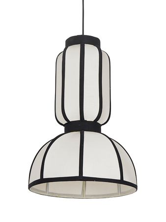 The JapandiCapsule-CO-HL1 is a striking example of modern Zen aesthetics, designed to bring a sense of verticality and calm to minimalist interiors. Standing at 18 inches in height, this pendant features a sophisticated two-tier silhouette: a sleek vertical capsule top that transitions gracefully into a wide bowl base. Crafted from premium white fabric, the shade is defined by bold black structural ribbing that emphasizes its unique architectural form. This contrast between the soft textile and the rigid black lines is the hallmark of Japandi style—blending Japanese elegance with Scandinavian functionality. Measuring 12 inches in width and paired with a 20-inch adjustable cable, this 1-light pendant provides a soft, glare-free glow that is perfect for creating a peaceful sanctuary. It is an ideal choice for high-ceiling bedrooms, modern tea rooms, or as a set of staggered pendants over a contemporary dining table.