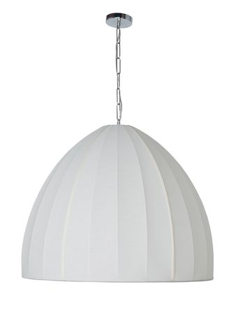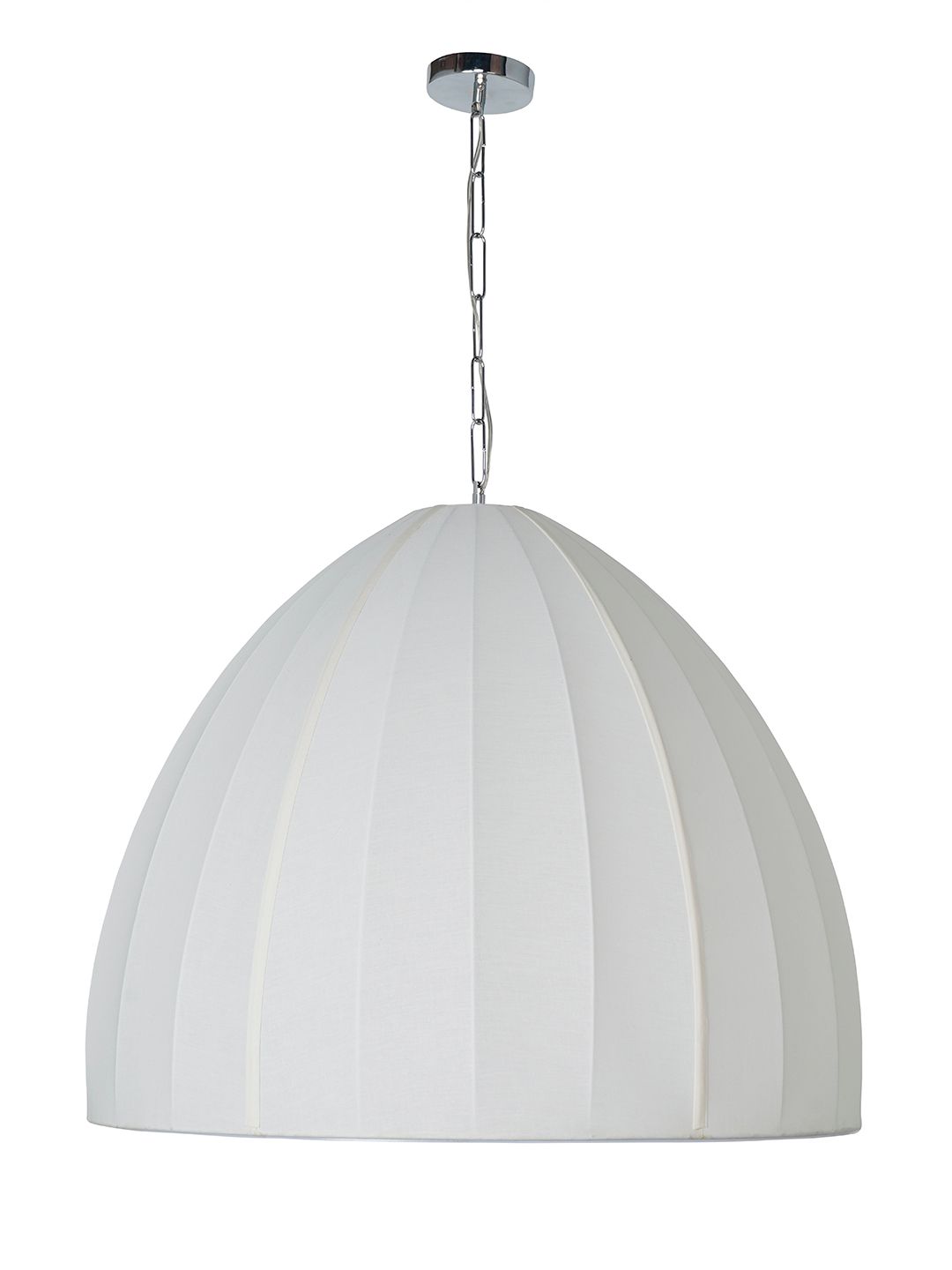 The OvalDome-CO-WHI0-26-HL6 is a masterclass in Modern Contemporary lighting, designed to provide a soft, sculptural focal point for minimalist and architectural interiors. This grand 26-inch diameter pendant features an elegant egg-shaped dome meticulously crafted from premium ivory fabric. The fabric is structured with subtle vertical ribbing that adds a sophisticated texture to its clean silhouette. To ensure a refined aesthetic from every angle, the base of the dome is finished with a white acrylic sheet cover. This diffuser hides the internal light sources and eliminates glare, casting a perfectly even, warm ambient glow across your space. Measuring 26" W x 26" D x 24" H with an additional 10-inch adjustable chain, this 6-light pendant is an ideal centerpiece for large round dining tables, modern living rooms, or high-end commercial lounges seeking a clean, "hotel-luxe" atmosphere