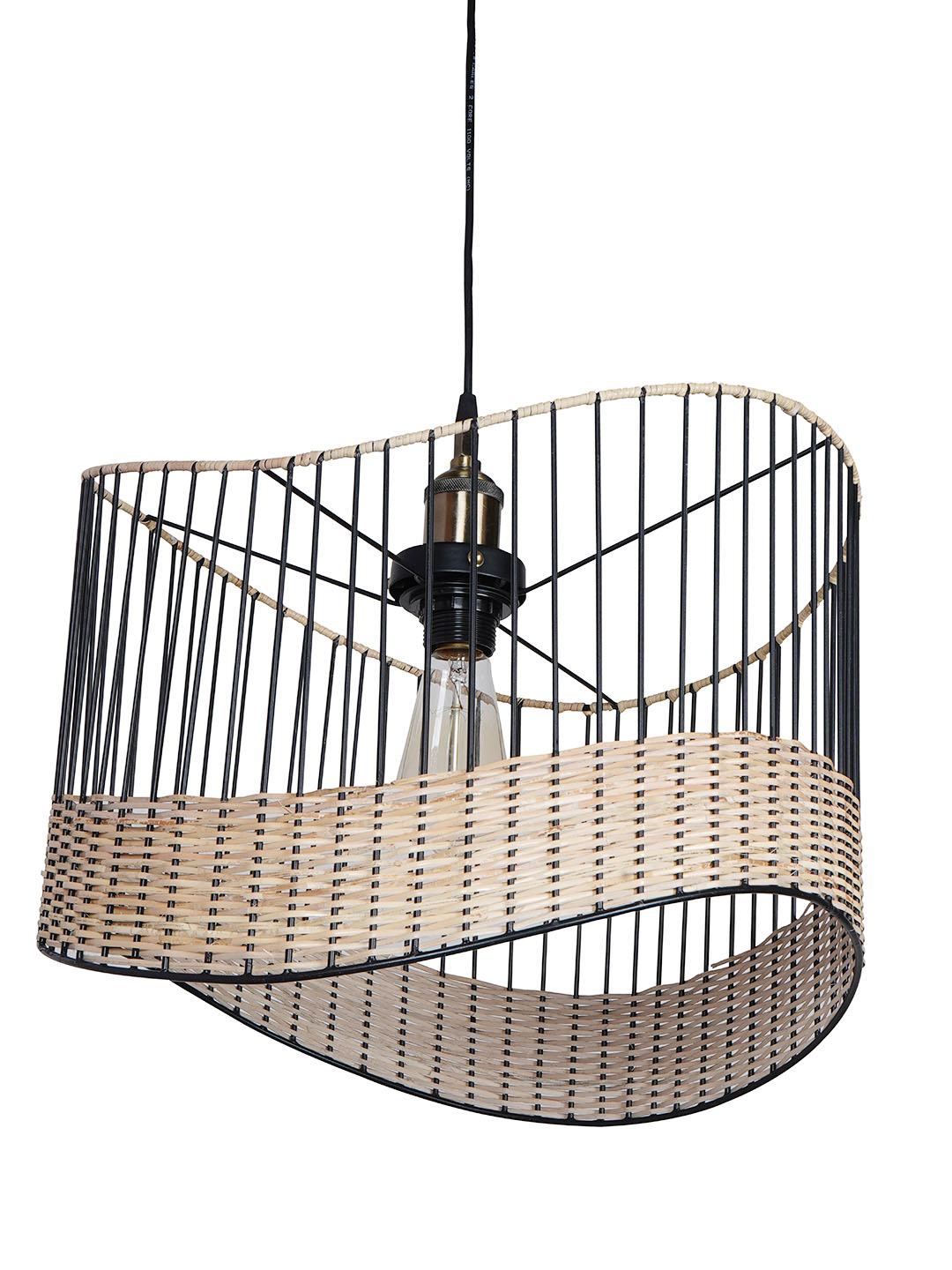 An artistic ceiling fixture with a unique design resembling a round wave will surely complement any contemporary decor. It is made of mild steel and has natural cane weavings, comes with a single light in a black finish. It is a fine & intricate piece of work handcrafted by professional artisans that will be a completely unique choice for your indoor areas like the hall, bedroom, living, or dining room.