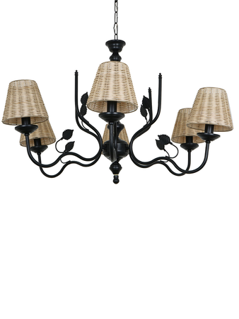 An Italian design ceiling chandelier, beautifully handcrafted by skilled craftsperson will complement any contemporary or coastal setting. It comes with 12 lights, beige tapered cane shades in a natural finish, and a creative base that has multiple curved arms along with attached floral leaves to it. This chandelier is a perfect choice that will provide a spectacular and an awe-inspiring experience in your foyer, hall, living, or dining room.