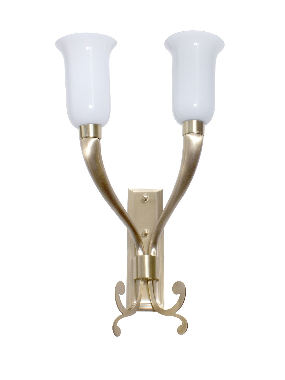 2 light fluted horn cast brass wall lamp in satin brass finish and milky white glass shades will enhance your home with a perfect mix of form and function.