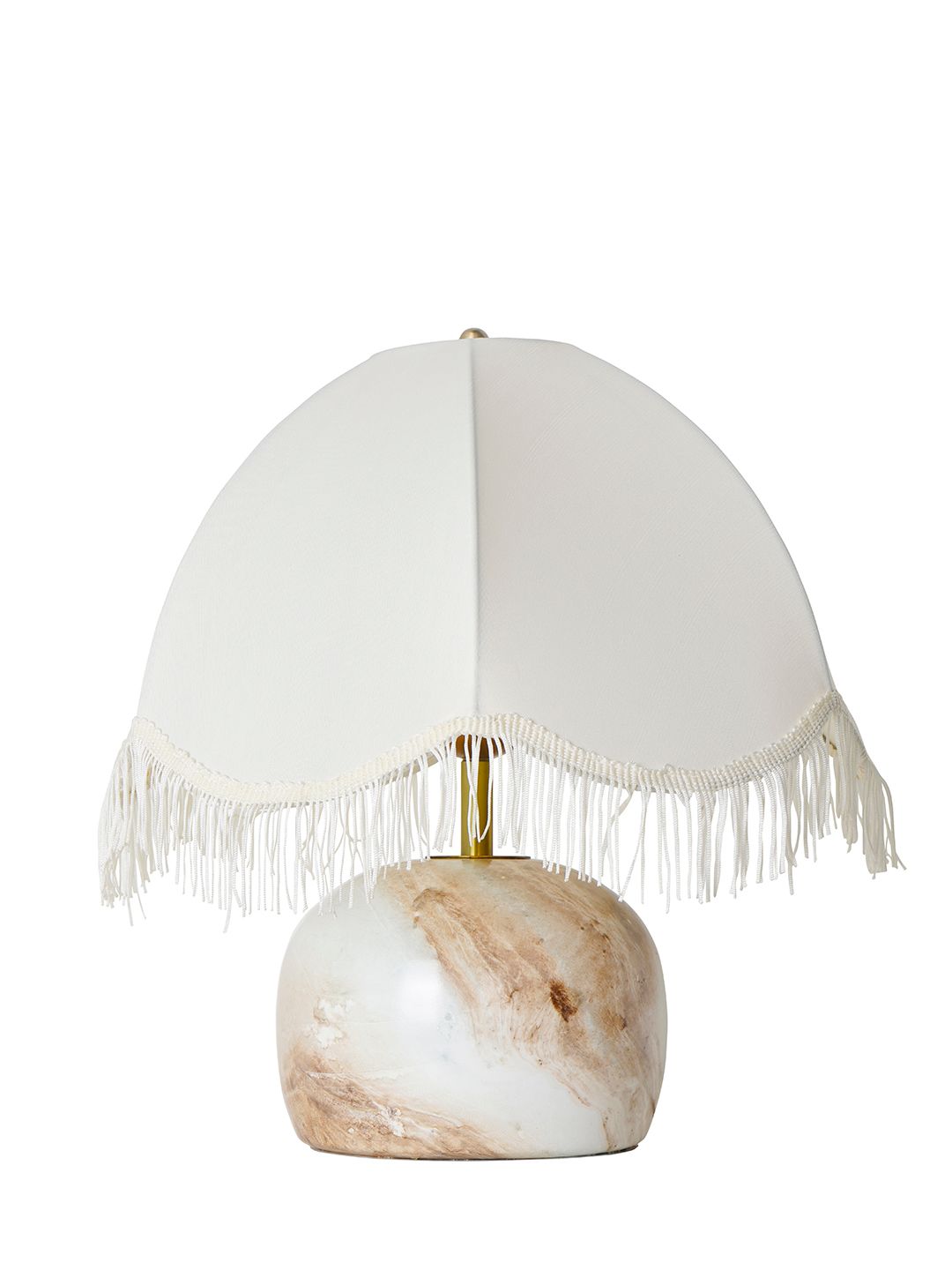 Add a touch of vintage-inspired elegance to your living space with our Italian Marble-Print Table Lamp. This unique piece features a sturdy mild steel base finished with a high-quality stone print, mimicking the luxurious swirls of natural Italian marble. The standout feature is the scalloped dome fabric shade, elegantly finished with delicate fringe detailing that softens the light and creates a warm, inviting glow. Perfectly sized at 16 inches tall, this lamp serves as a sophisticated accent for bedside tables, study desks, or living room consoles. Combining the industrial durability of steel with the soft aesthetic of classic décor, it is the ultimate statement piece for those who appreciate eclectic style.