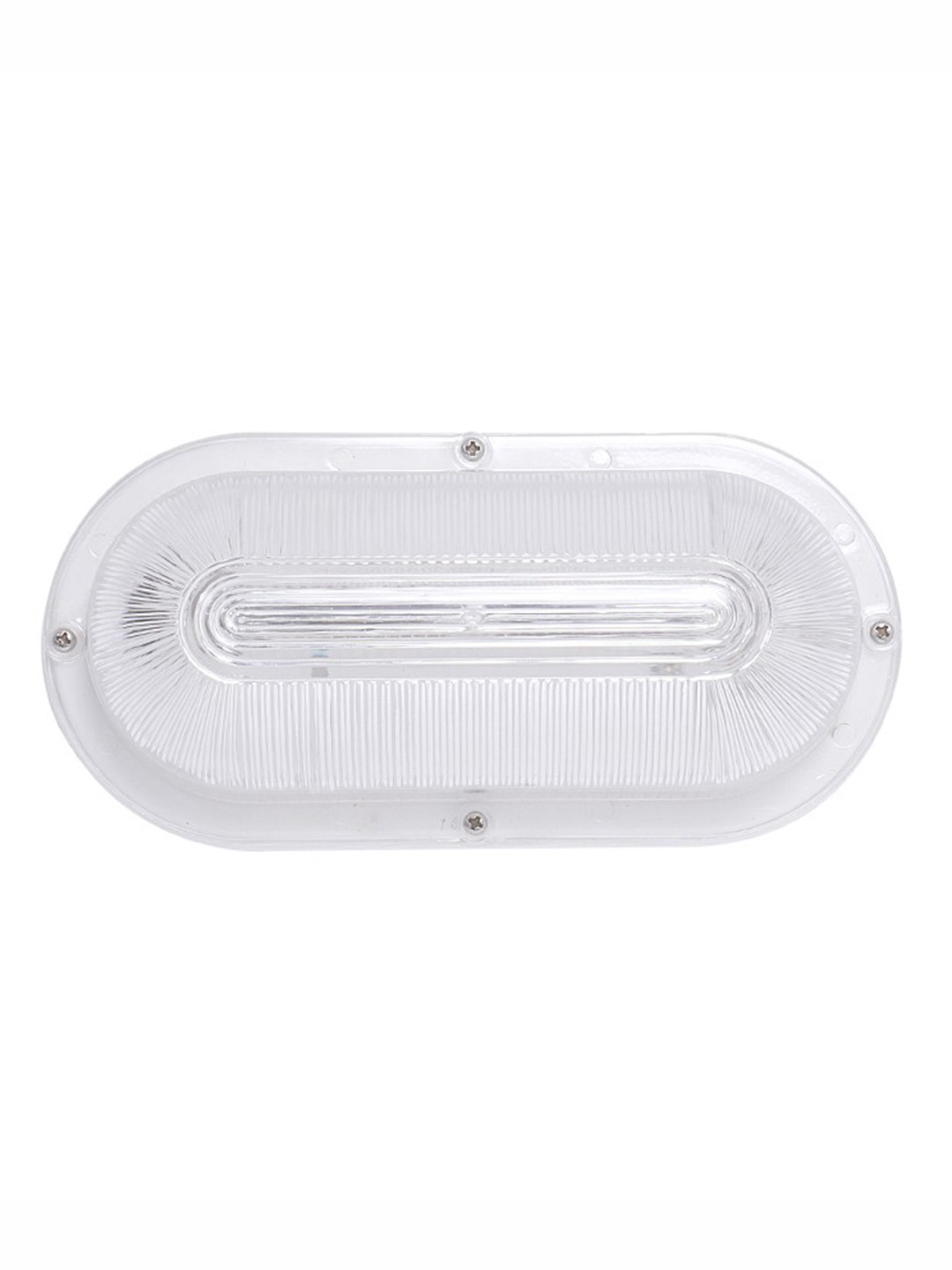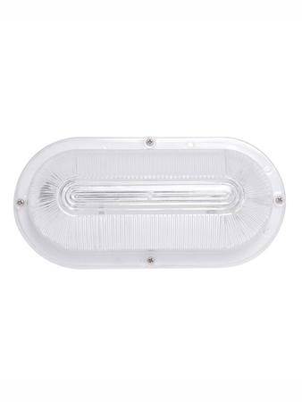 Water and rust resistant bulkhead light fixture with aluminium base and unbreakable poly-carbonate cover.