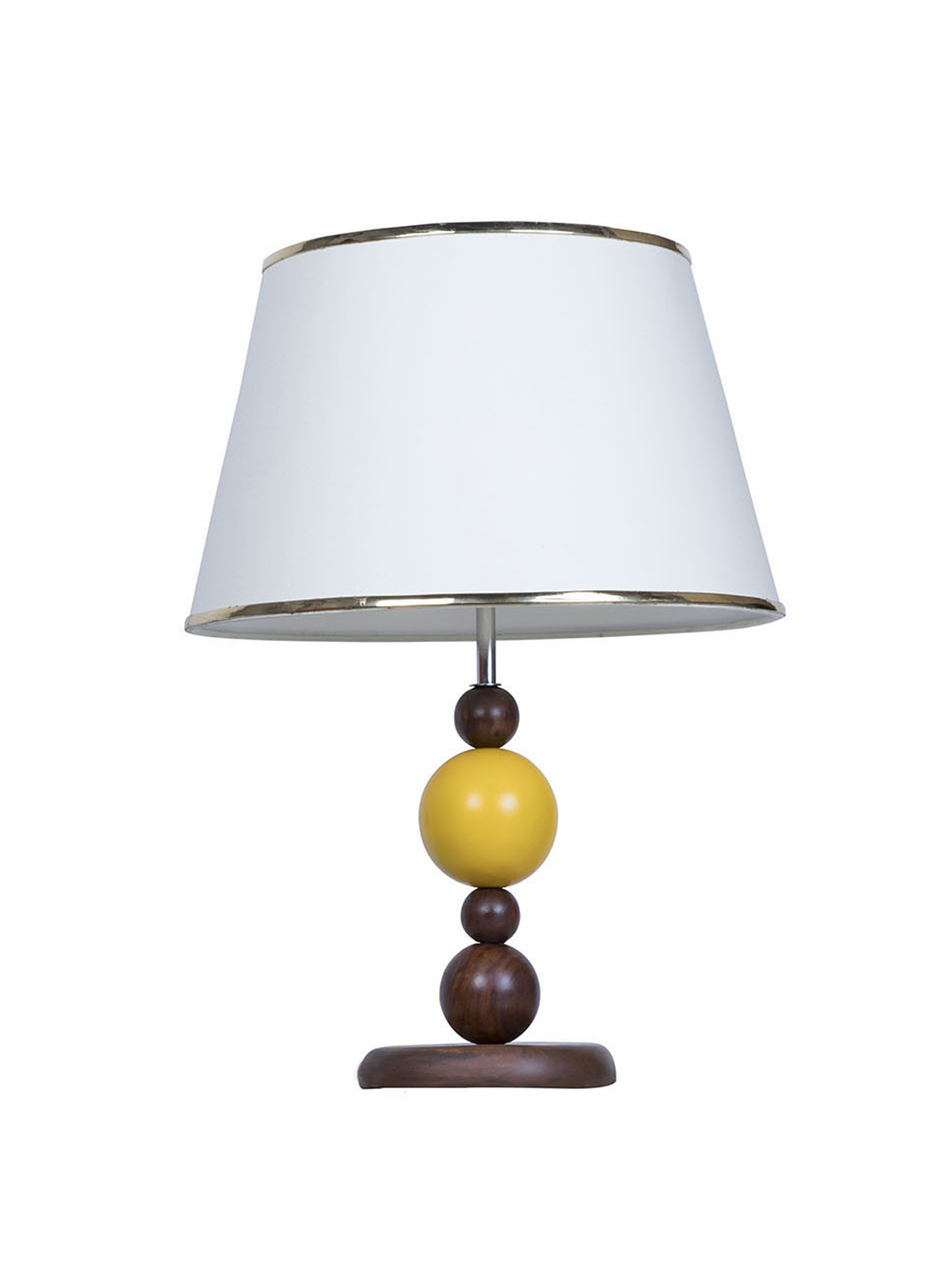 Yellow Ball table lamp is made from natural wood and boasts a modern, geometric design of simple shapes that add a casual elegance to any room.