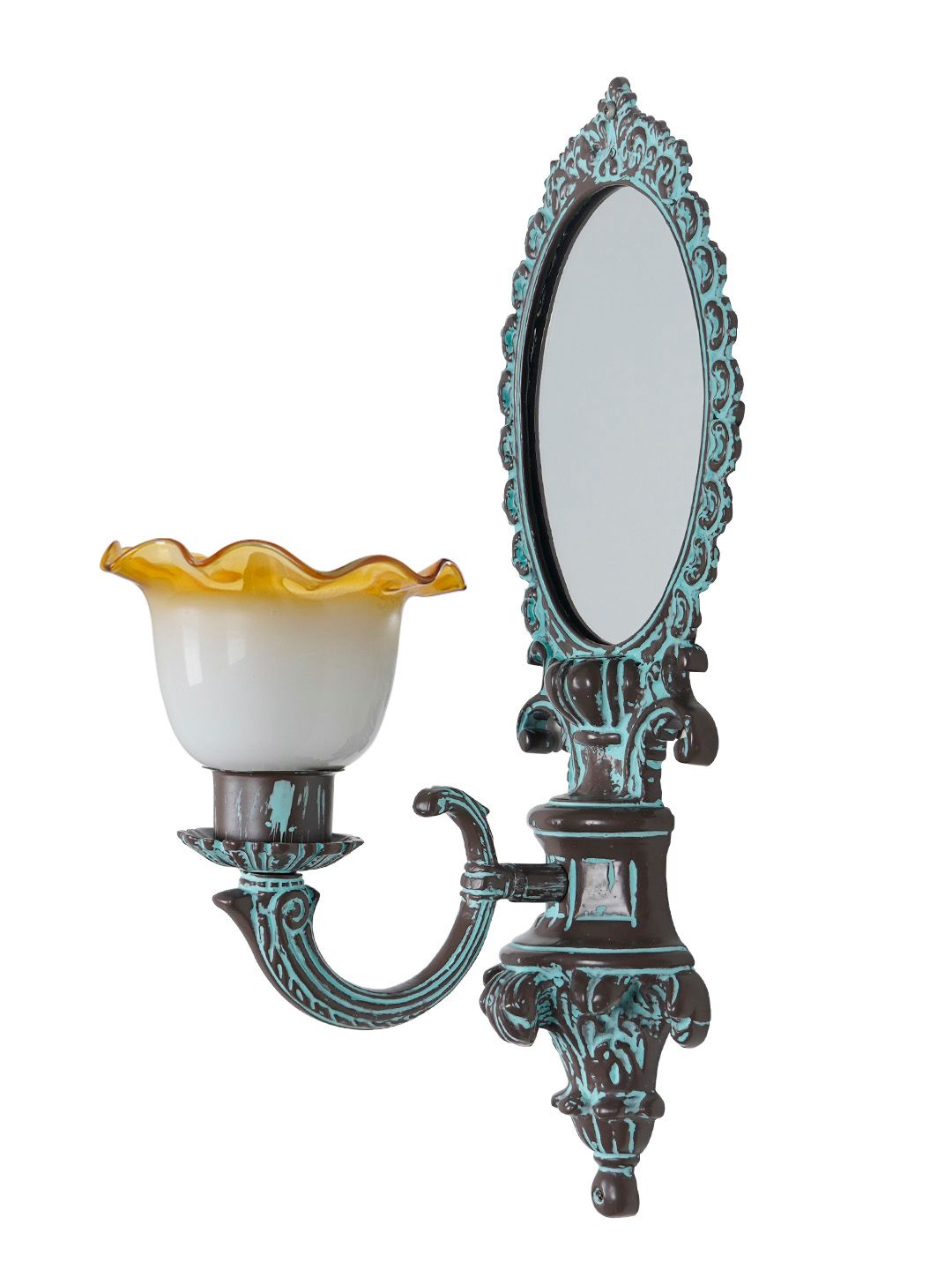 The PatinaMirror-LangWHIL-WL1 is a masterpiece of traditional elegance, designed to bring a warm, regal atmosphere to any space. Measuring 22 inches in height and 8 inches wide, this wall sconce is expertly crafted from high-quality cast aluminium with a timeless bronze patina finish. The most striking feature of this fixture is its flower-shaped milky white glass shade, which is beautifully accented by a delicate amber frilled rim. This intricate glasswork sits atop a classic mirrored backplate, which not only adds to the fixture's rich, historical aesthetic but also serves to reflect and amplify the warm light. This sconce is the direct matching wall-mount version of our 8-light grand chandelier, making it an essential choice for designers looking to create a cohesive, heritage-inspired lighting plan in grand entryways, formal dining rooms, or hotel corridors.