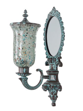 The PatinaMirror-SamaToughClear9-WL1 is a breathtaking fusion of old-world metalwork and vibrant glass artistry. Standing at 22 inches in height, this wall sconce is constructed from durable cast aluminium with a sophisticated bronze patina finish. The centerpiece of the fixture is a stunning light sea-green crackled mosaic glass shade, which creates a mesmerizing, textured light pattern when illuminated. The base features an integrated looking mirror, a signature design element that enhances the depth of the room and reflects the rich colors of the mosaic glass. For added longevity and ease of care, the shade is topped with a decorative cast aluminium lid. This lid not only provides a cohesive architectural look but also prevents dust from entering the shade, ensuring the mosaic glass remains brilliant with minimal maintenance. Perfectly suited for Traditional and Mediterranean styles, this sconce adds a rich, jewel-toned accent to luxury entryways, formal dining rooms, and upscale hospitality corridors.