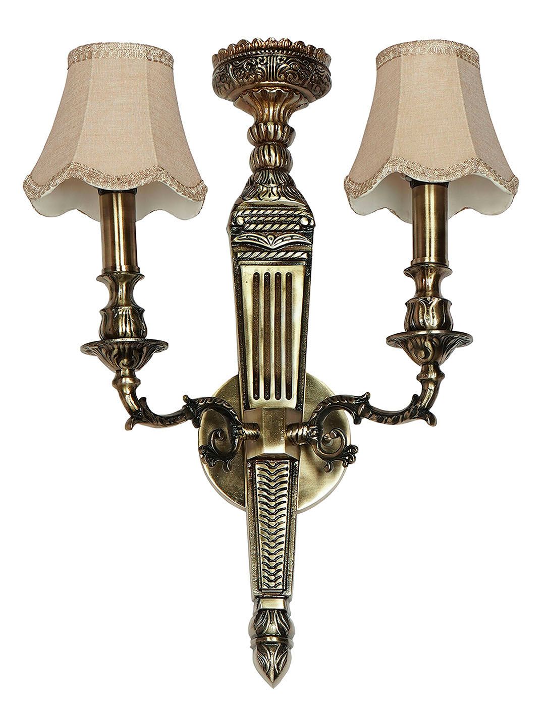 Introduce timeless elegance with the magnificent Taj-AL-CHIA-JuteKamal-WL2 double wall sconce. This impressive fixture, standing at 24 inches high (18 inches W x 8 inches D x 24 inches H | 45.72 cm W x 20.32 cm D x 60.96 cm H), is the perfect statement piece for grand foyers, living rooms, or formal dining areas. It is crafted from durable cast aluminium and finished in a rich, textured antique brass. The ornate base and classically curved arms are topped with two exquisite, scalloped jute fabric shades, adding a unique, earthy counterpoint to the traditional metalwork. This sconce provides balanced, ambient light, embodying true Traditional and Classic style.