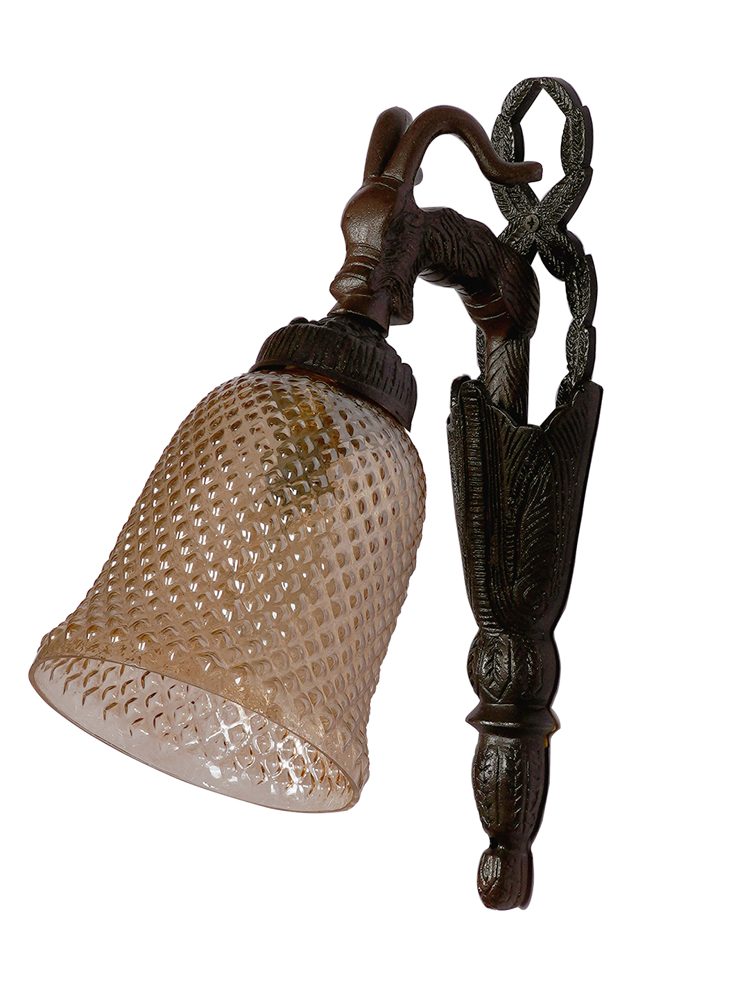 This aluminium wall sconce showcases an antique mid-century style. It features a cast aluminium molded sheep in the bronze finish attached with a beautifully detailed dotted glass lamp shade. This rustic wall light fits well in any classic decor. The frosted glass shade emits an elegant and radiant glow that brightens your place and is an extraordinary addition to any corner of your home.