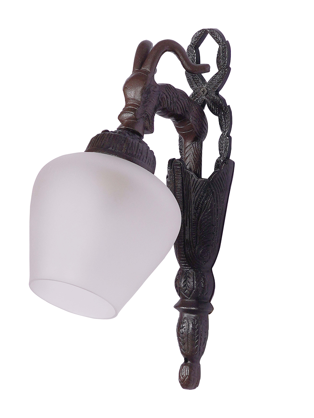 This aluminium wall sconce showcases an antique mid-century style. It features a cast aluminium molded sheep in the bronze finish attached with a plain frosted goblet glass shade. This rustic wall light fits well in any classic decor. The frosted glass shade emits an elegant and radiant glow that brightens your place and is an extraordinary addition to any corner of your home.